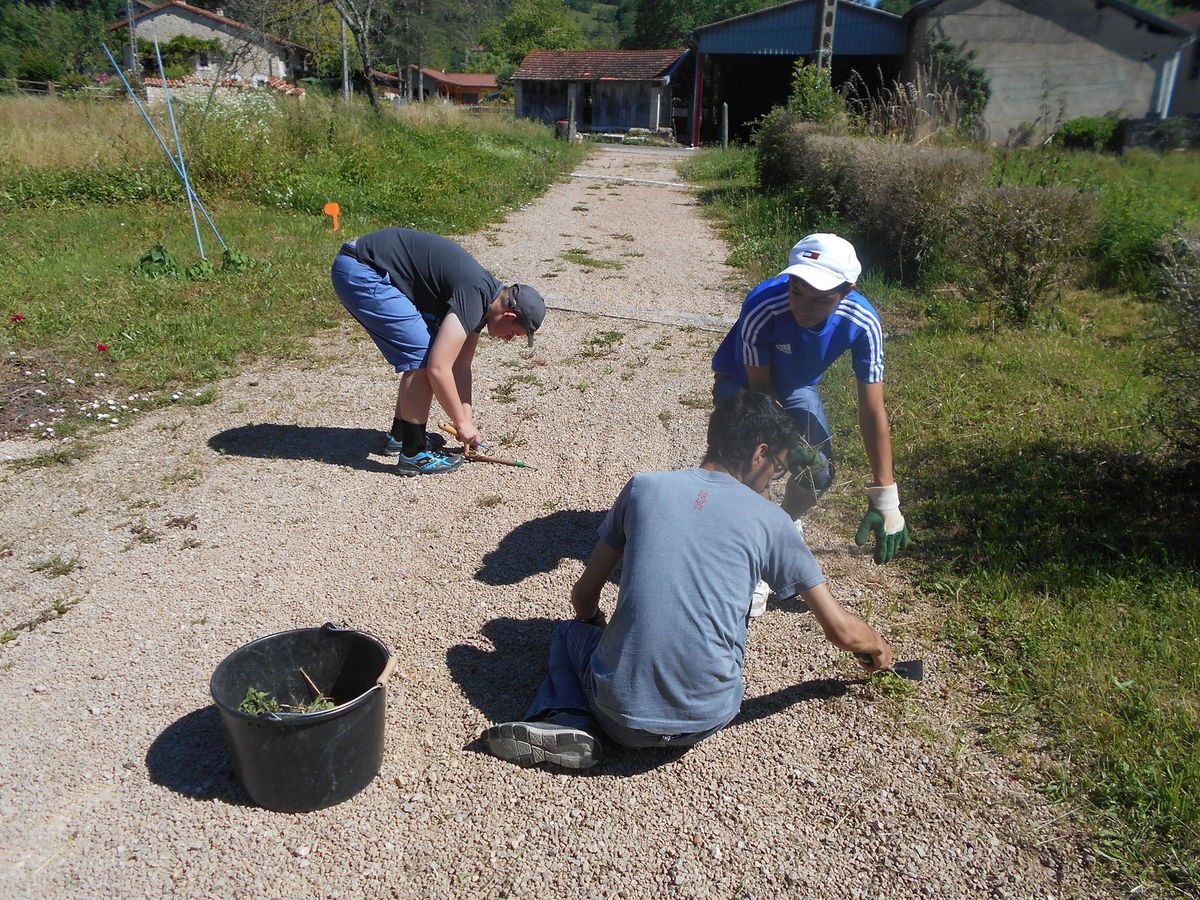 Vers 10 h, 7 jeunes de l'IME Prélion et leurs éducateurs sont venus à Rignat pour faire des travaux de désherbage. Nous n'avons pas pu faire tout ce qui était prévu mais nous avons passé une très bonne journée ensemble.